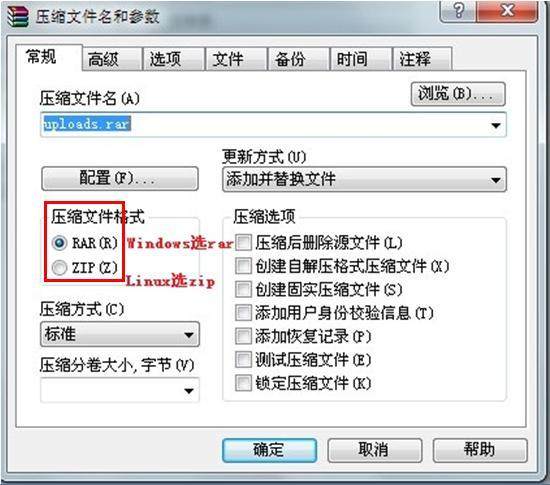 使用Windows系统虚拟主机,需要打成.rar格式的压缩包。使用Linux系统的虚拟主机,需要打成.zip格式的压缩包。